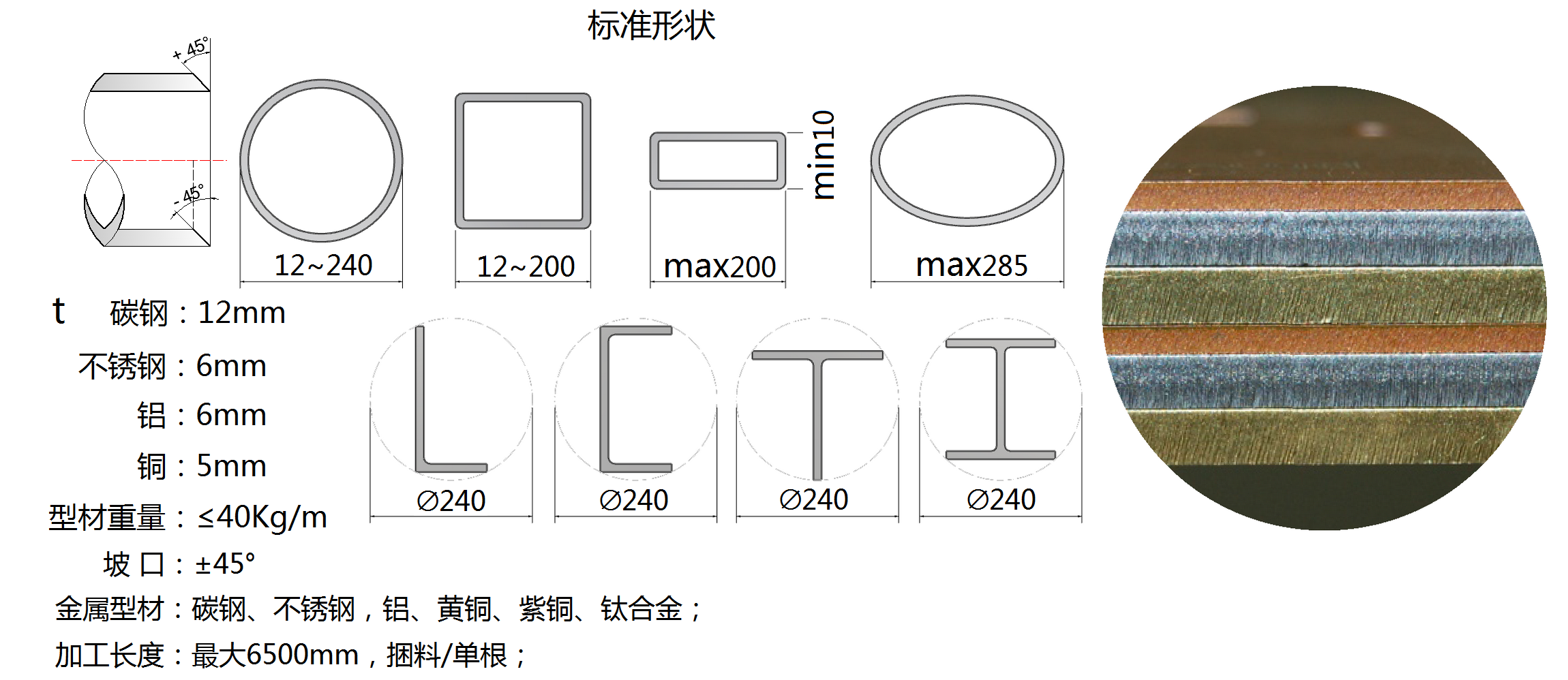 型材材质:碳钢、不锈钢、铝、黄铜、紫铜、钛合金