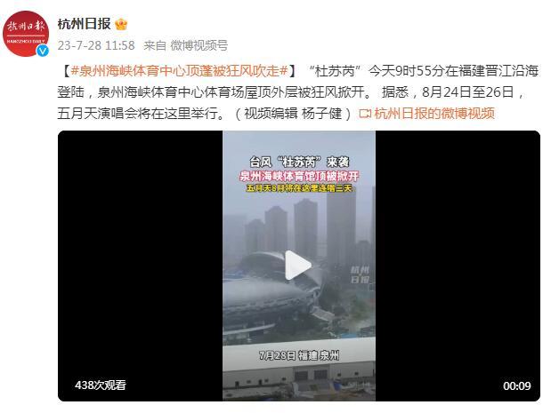 泉州海峡体育中心屋顶外层被狂风掀开